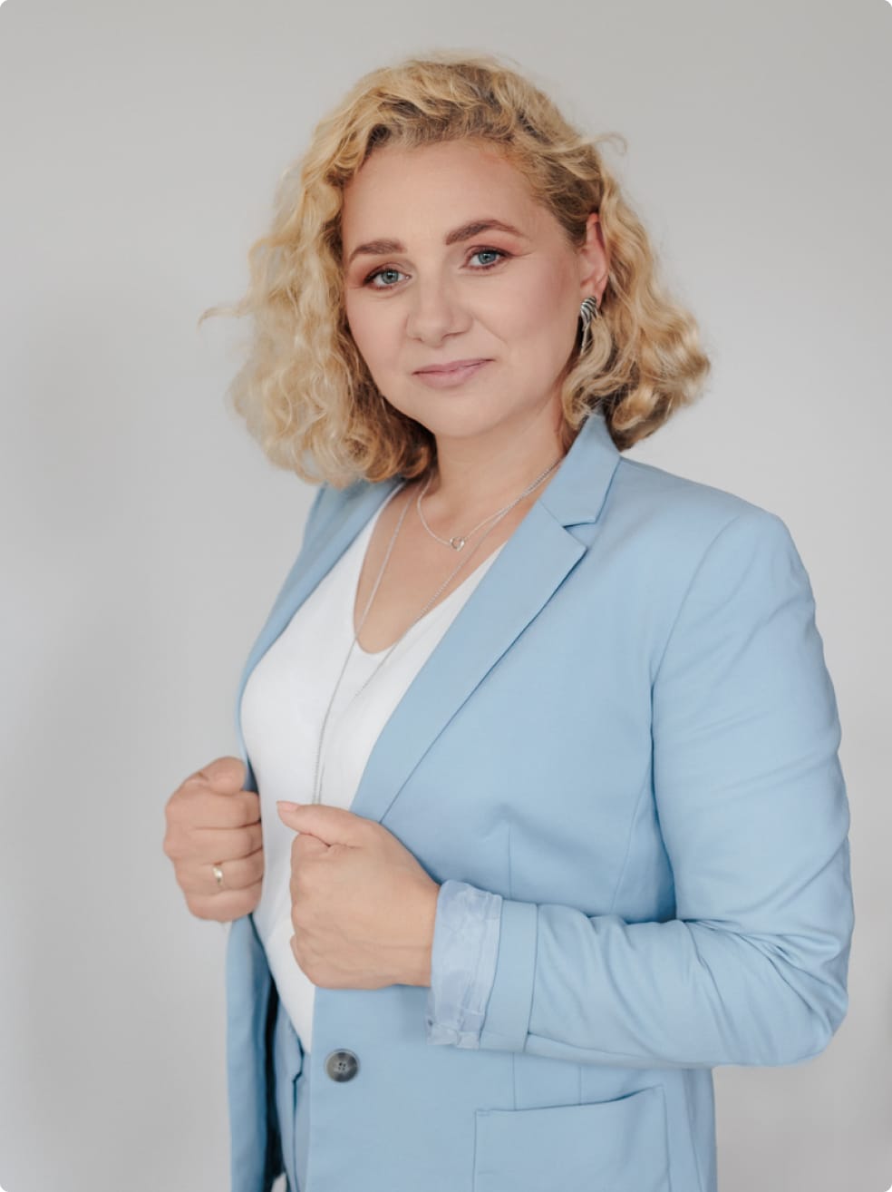 Práva jsem vystudovala v Krakově. Absolvovala jsem zahraniční studijní pobyty v Tilburgu a Kyjevě, a také doplňkové studium ochrany duševního vlastnictví na Jagellonské univerzitě. Řídím polskou pobočku V4 Group a V4 Legal, tedy advokátní kancelář v rámci naší skupiny.